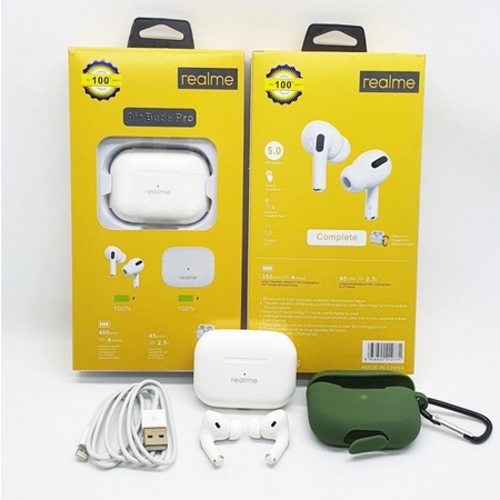 Realme Air Buds Pro With Case Wireless Earphone 5.0 Headset Bluetooth Gratis Case Kualitas