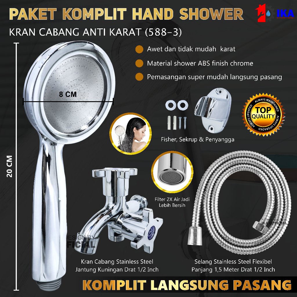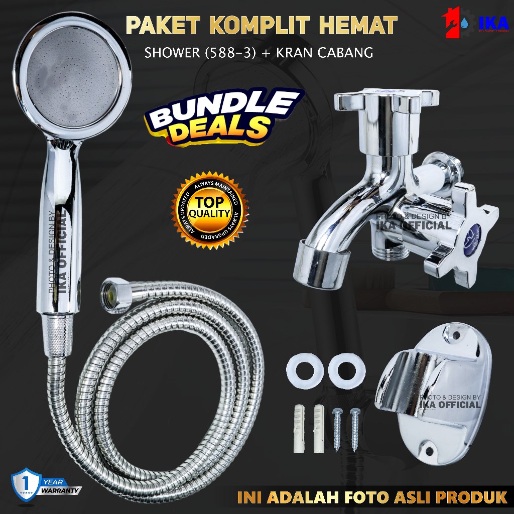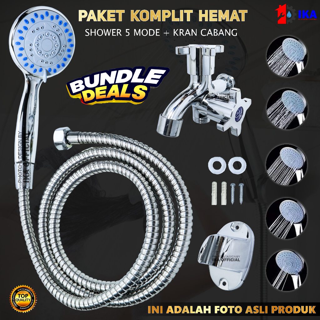 Paket Shower Kamar Mandi dan Kran Shower Cabang - 1/2 Inch Stainless 5 Mode Fungsi / Paket Komplit Kran Chrome Shower Ma