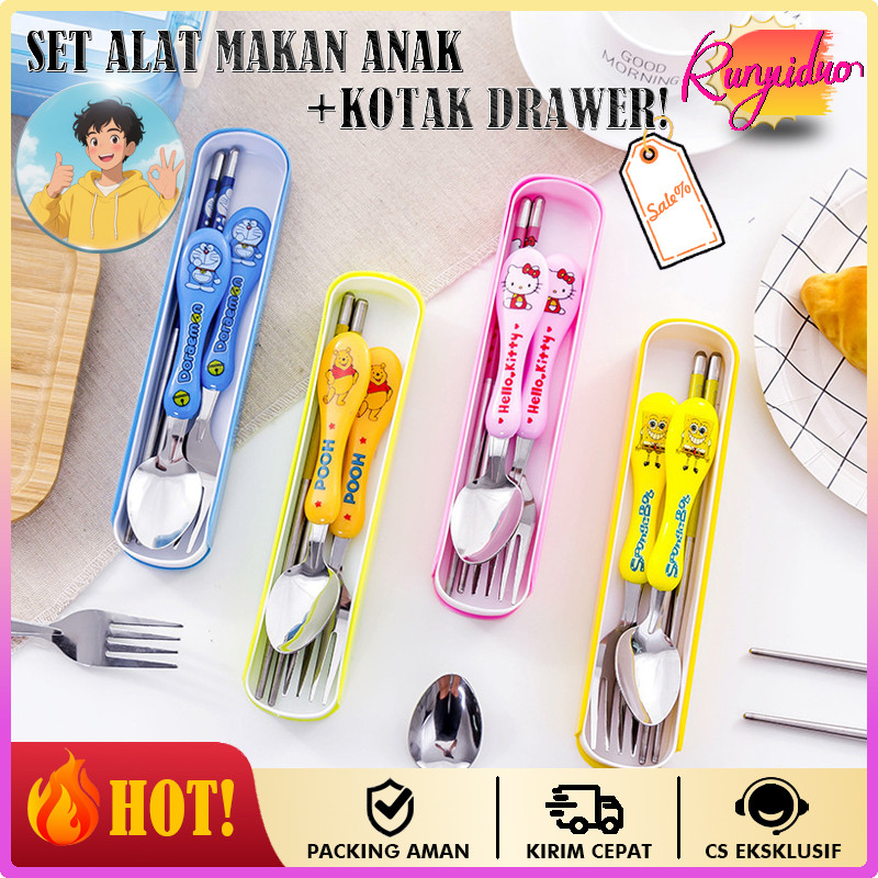 Sendok Set Anak Stainless Steel Alat Makan Sendok Garpu Sumpit Anti Karat