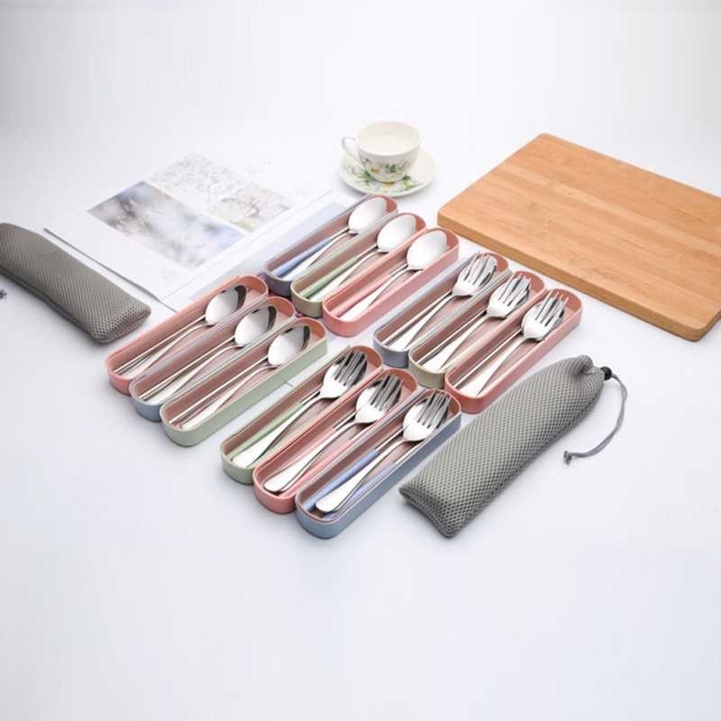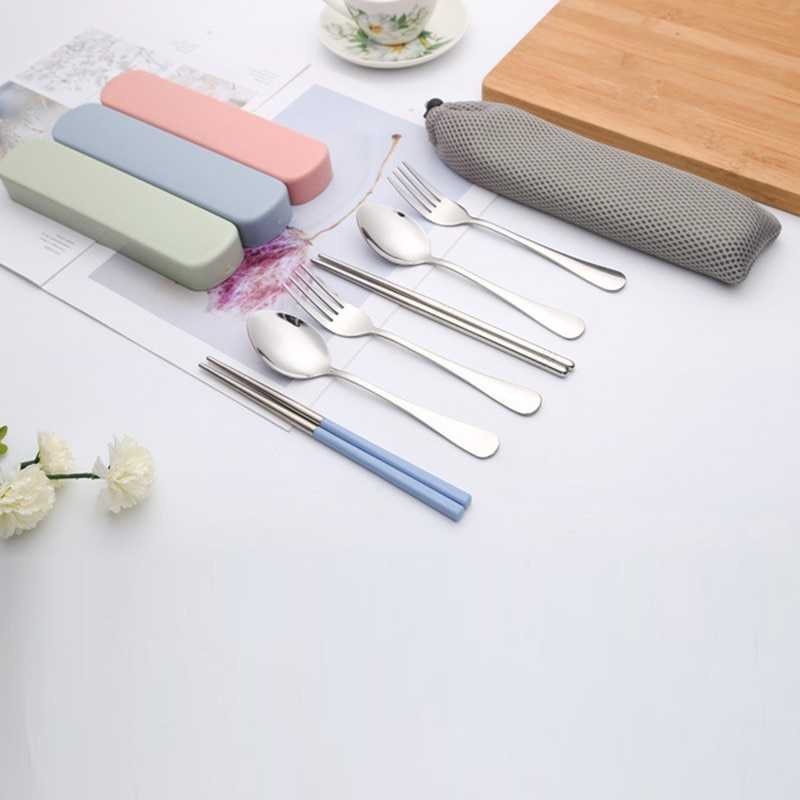 Alat Makan KOREA l Cutlery Set l Sendok Garpu Sumpit Portable Satu Set - Biru