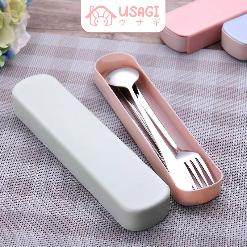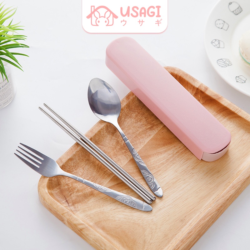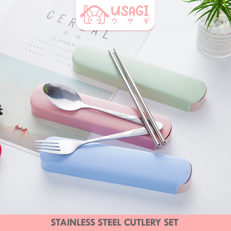 Usagi Official - Cutlery Set 3in1 Sendok Garpu Sumpit Western Style Stainless Steel Alat Makan Korea Serbaguna