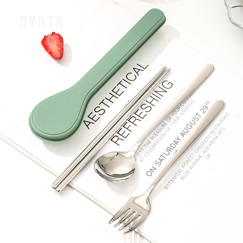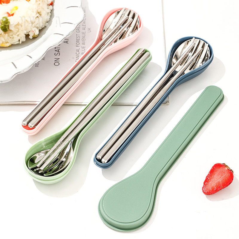 4 IN 1 Set Sendok Anak 401 Stainless Steel Garpu Sendok Sumpit Sendok Garpu Set Peralatan Makan Portabel Nyota