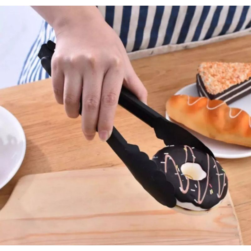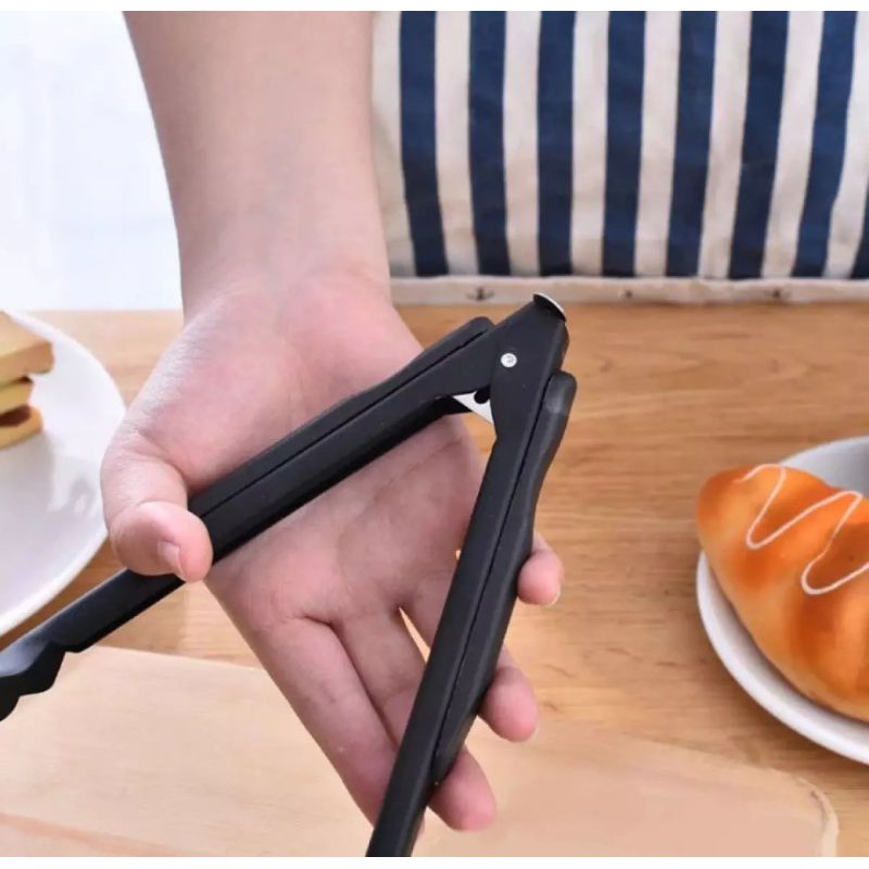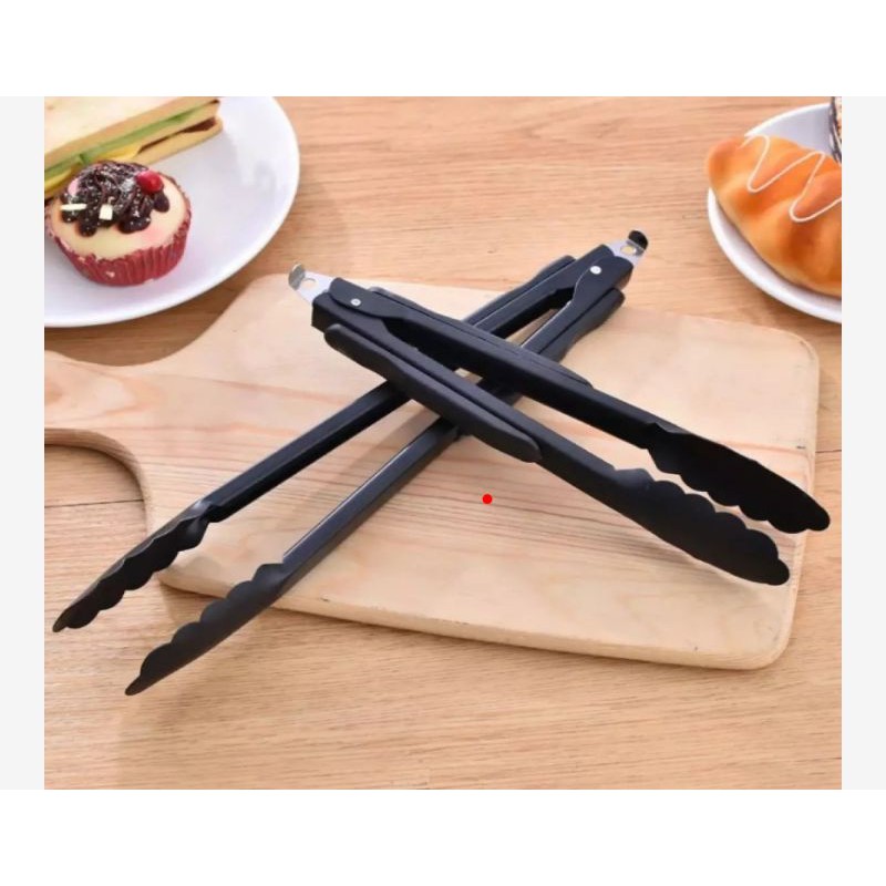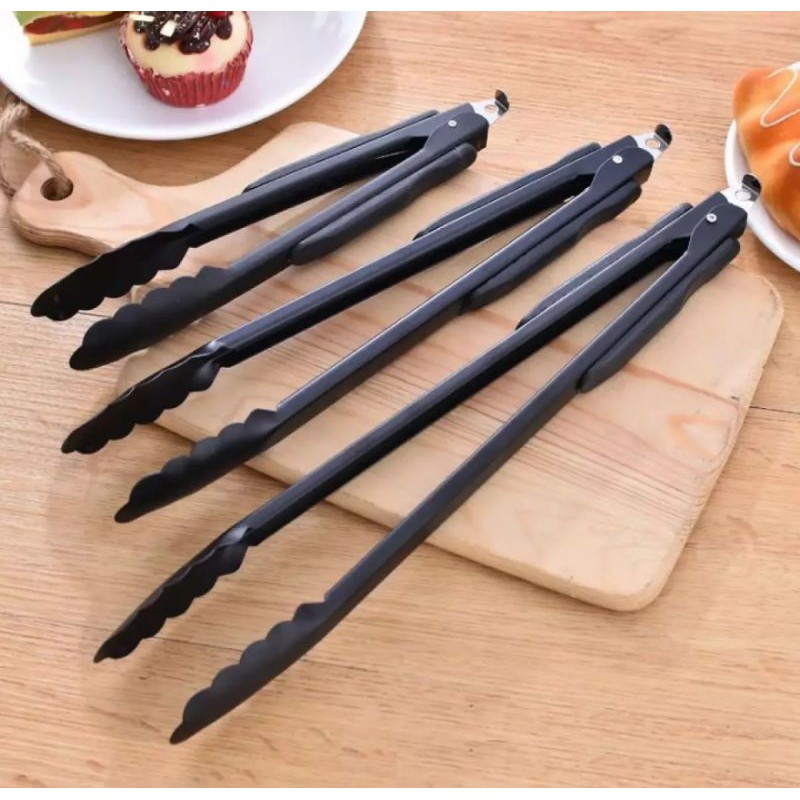Penjepit Makanan Capitan Hitam Stainless Food Tong Elegan