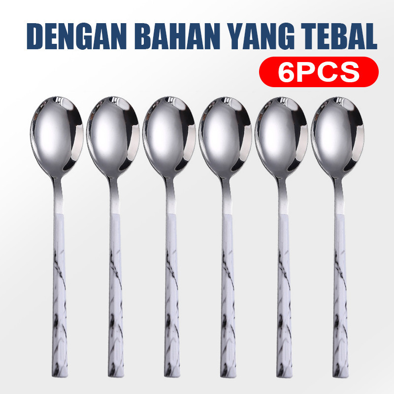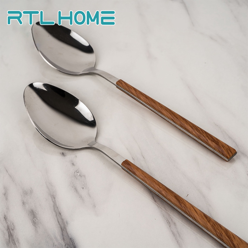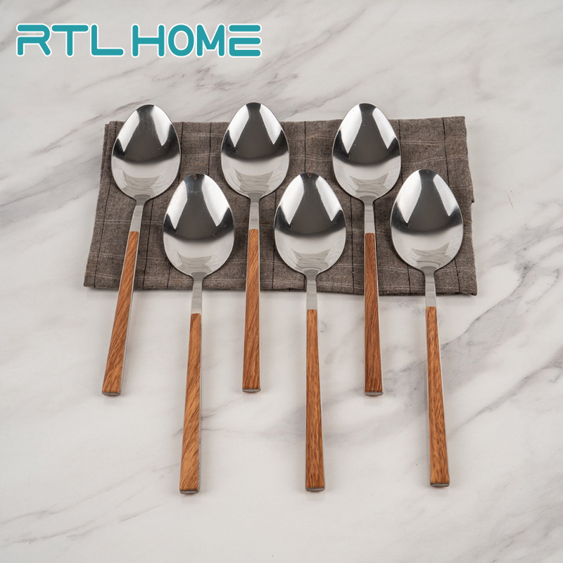 (12PCS) RTL Sendok Makan Tebal Isi 6pcs Gagang Motif Kayu Stainless Steel Berkualitas