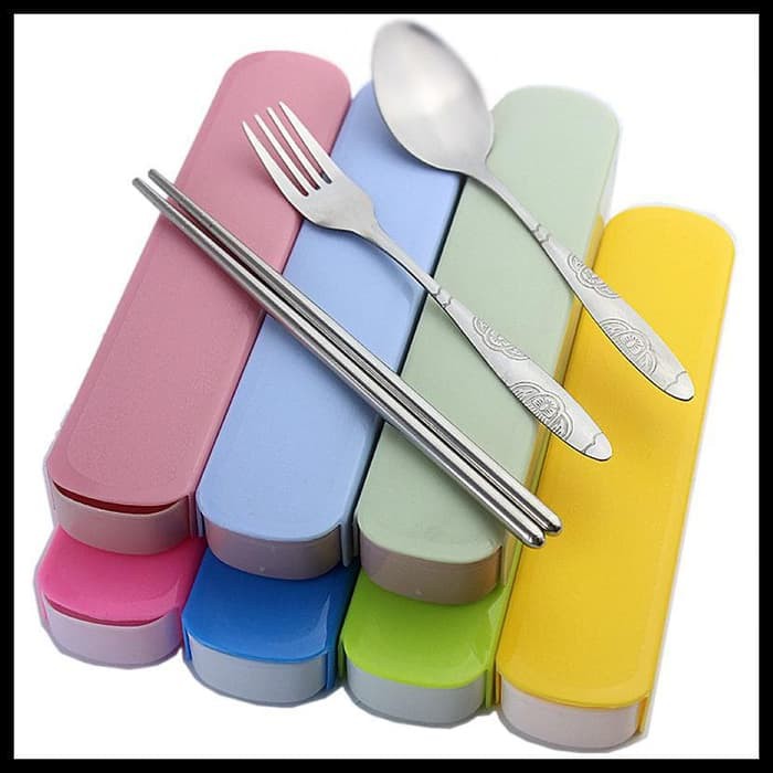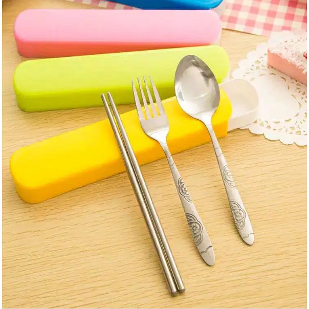 Sujeo Set 3in1 Sendok Garpu Sumpit Stainless Steel 304 Portable Korean Style Karakter Minimalis