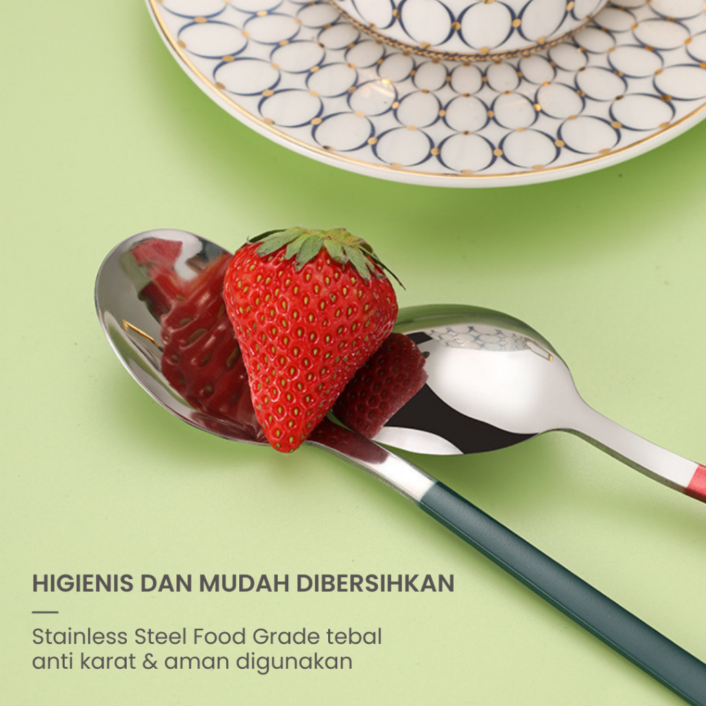 FUNNYCOOK Sendok Garpu Set Stainless Sujeo Korean Alat Makan Korea Tebal Warna Warni - Pink
