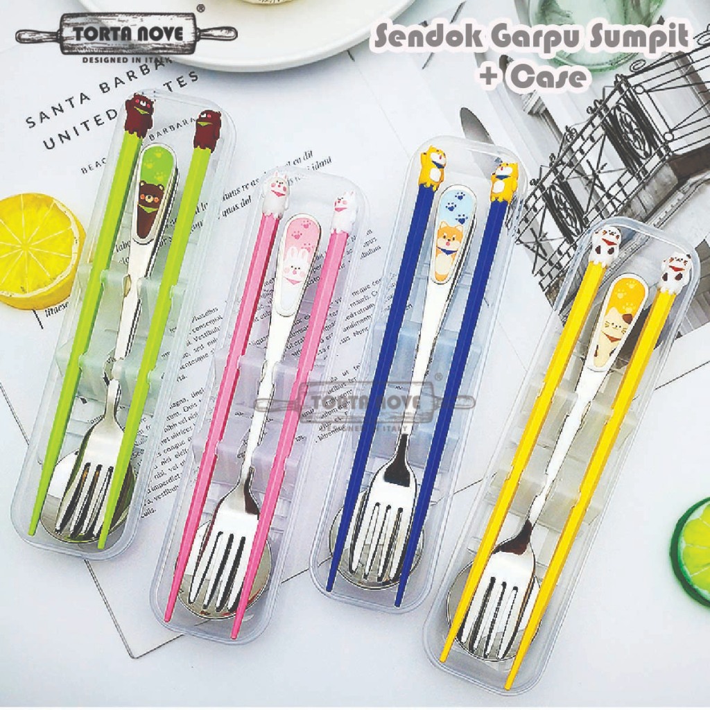 Sendok garpu set stainless 304 tebal korea Travel dengan kotak Alat makan anak sekolah DEWASA