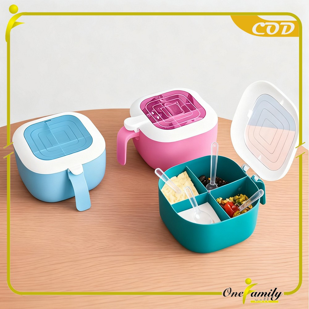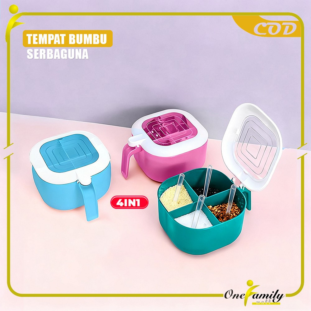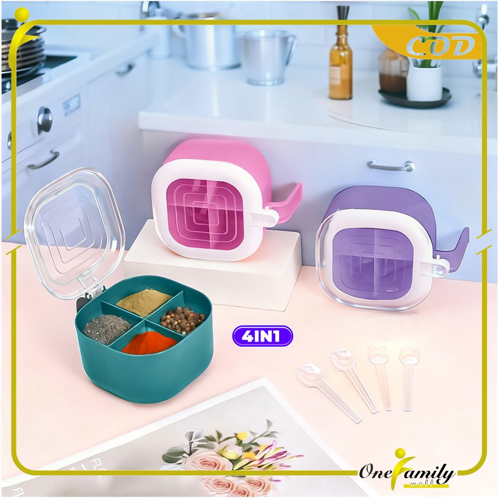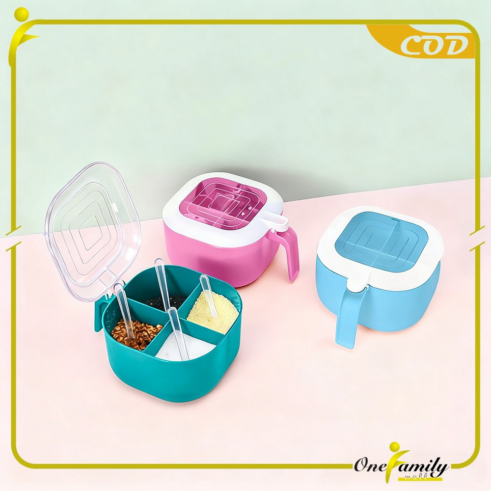 Kotak Bumbu Onec1245 4In1 Sekat Serbaguna Free 4 Sendok Penyimpanan Garam Gula
