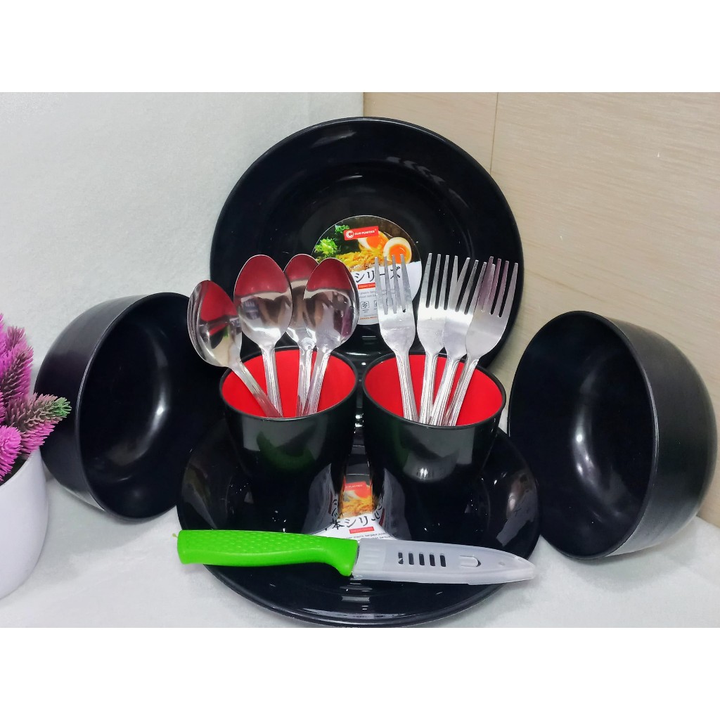 Set Perlengkapan Makan / Piring Anak Kos / Set Makan (Hitam)