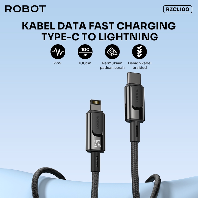 ROBOT Kabel Data Fast Charging Type C Lightning Black/Gold RZC100/RZL100/RZCC100/RZCL100 Original - Garansi 1 Tahun