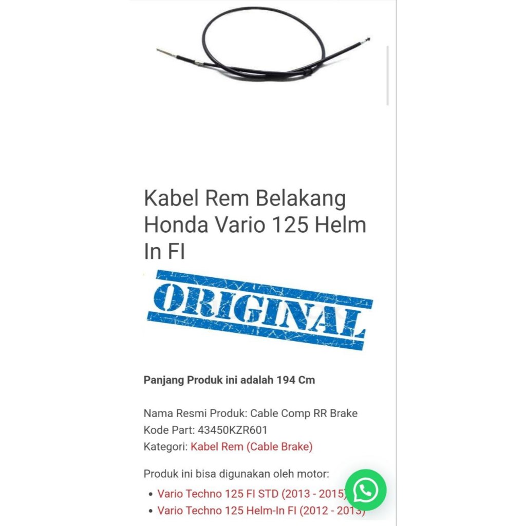 Kabel Rem Belakang KZR Vario 125 Fi Original Baru Honda
