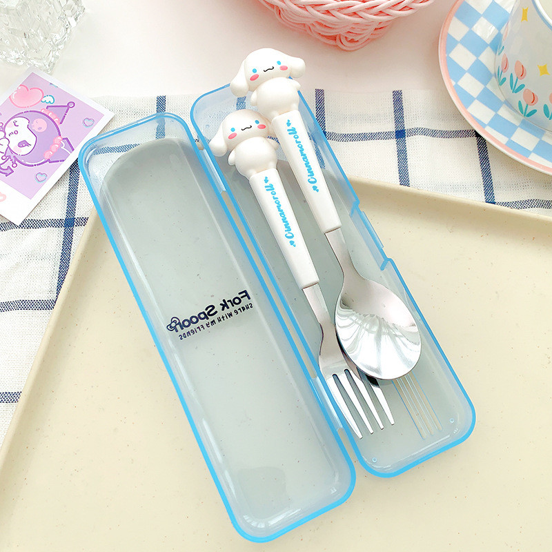 Perlengkapan Makan Anak Bergambar Kuromi – Sendok & Garpu Stainless Steel dengan Kkuningan mengkilapan Kotak