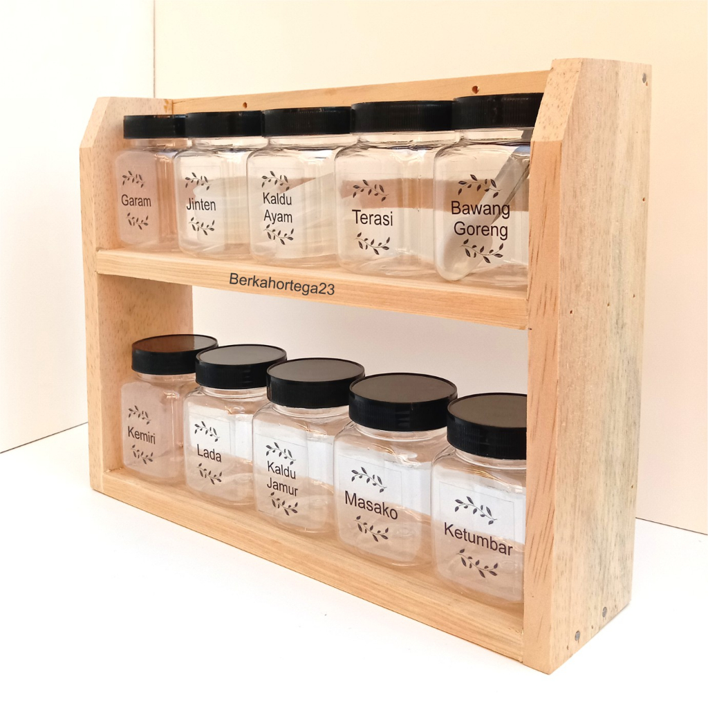 Rak Bumbu 2 Susun Free Toples Sendok Stiker Transparan Custom Nama Bumbu