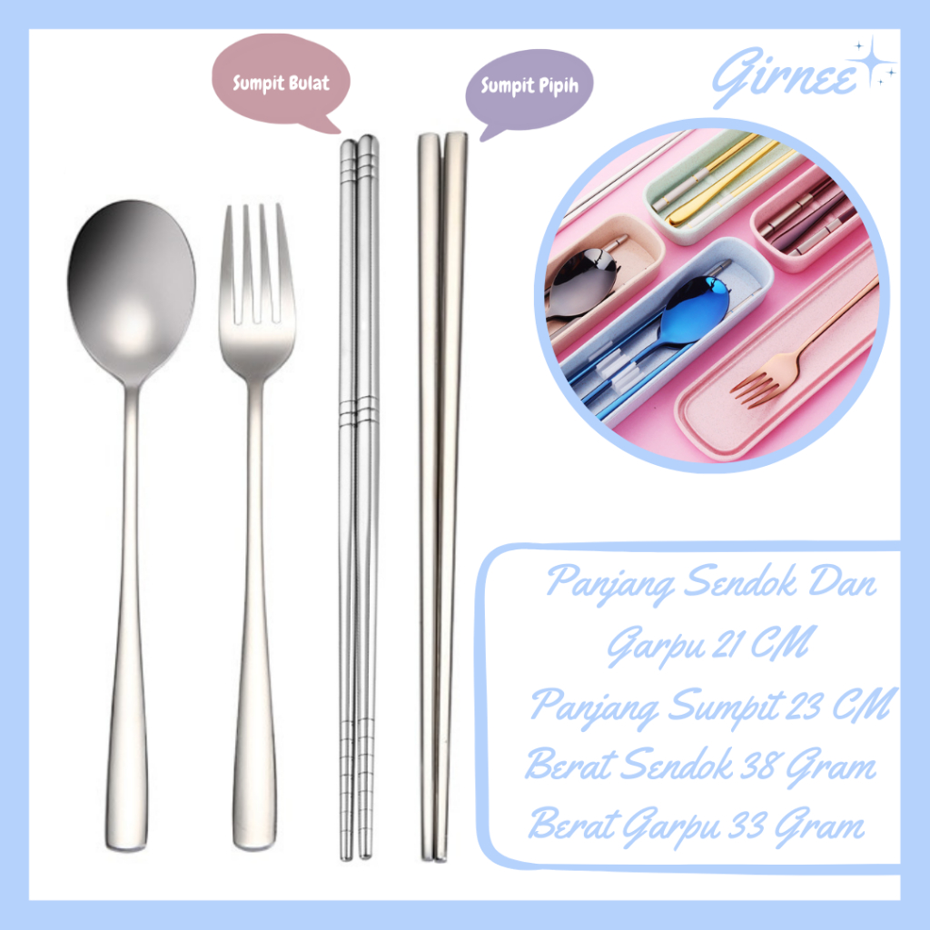 Paket Sendok Garpu Sumpit Korea Kualitas Premium/Paket Alat Makan Traveling/Sendok Garpu Sumpit Stainless/