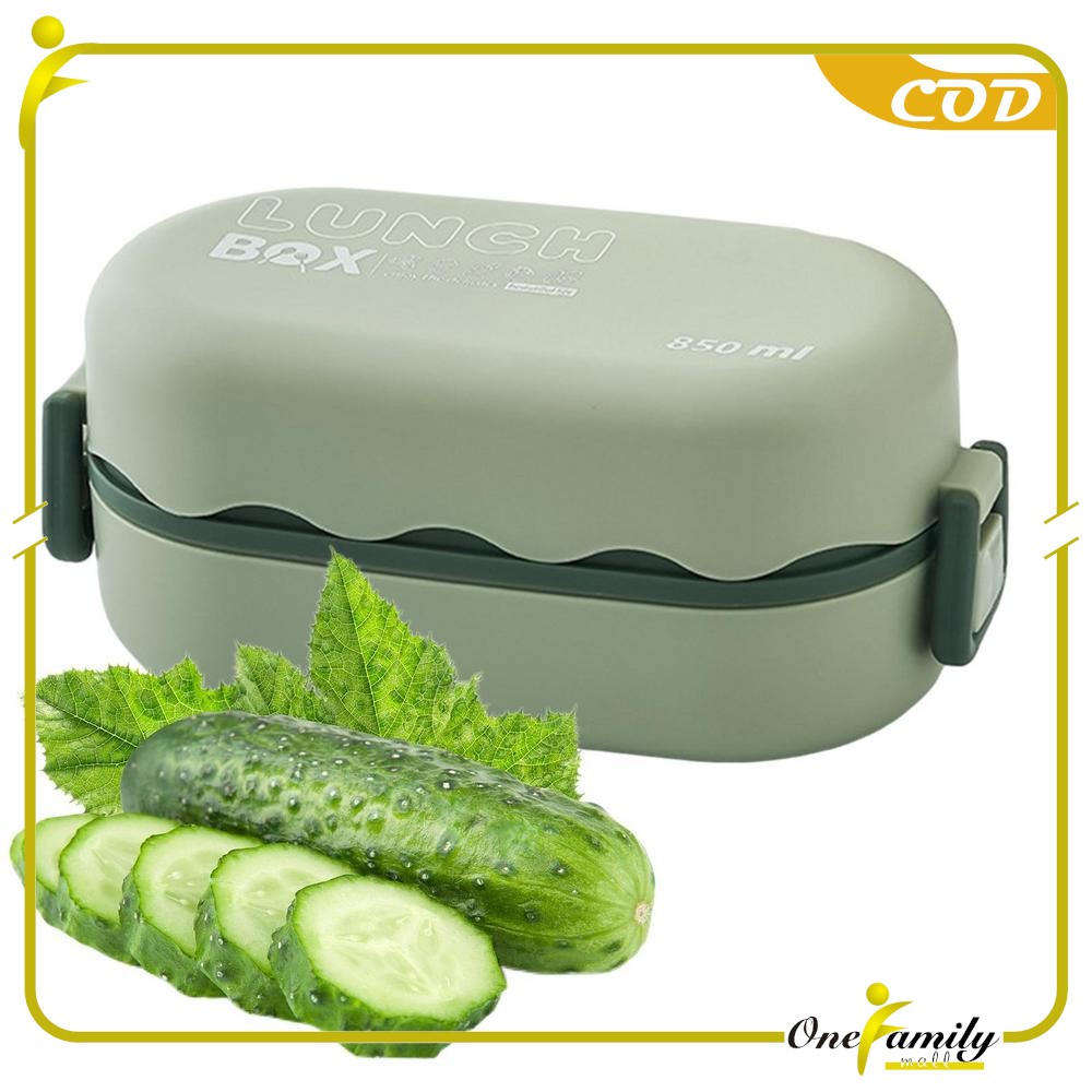 Lunch Box Onec780 Bento Set 850Ml Kotak Bekal Makan Siang 2 Tingkat Portable Anti Tumpah Free Sendok
