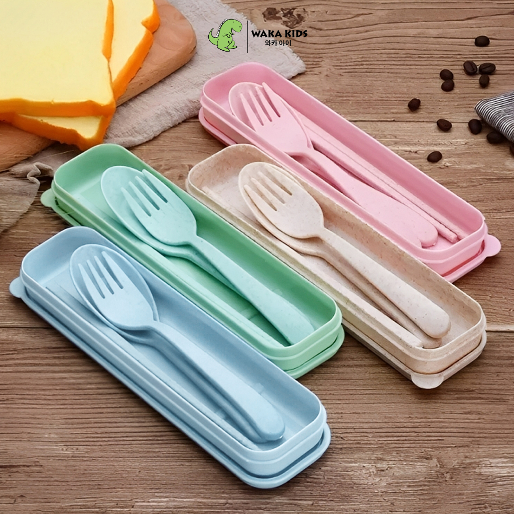 Wakakids Set Alat Makan Sendok Garpu Sumpit Bahan Jerami Travel 3in1 Portable Venhs
