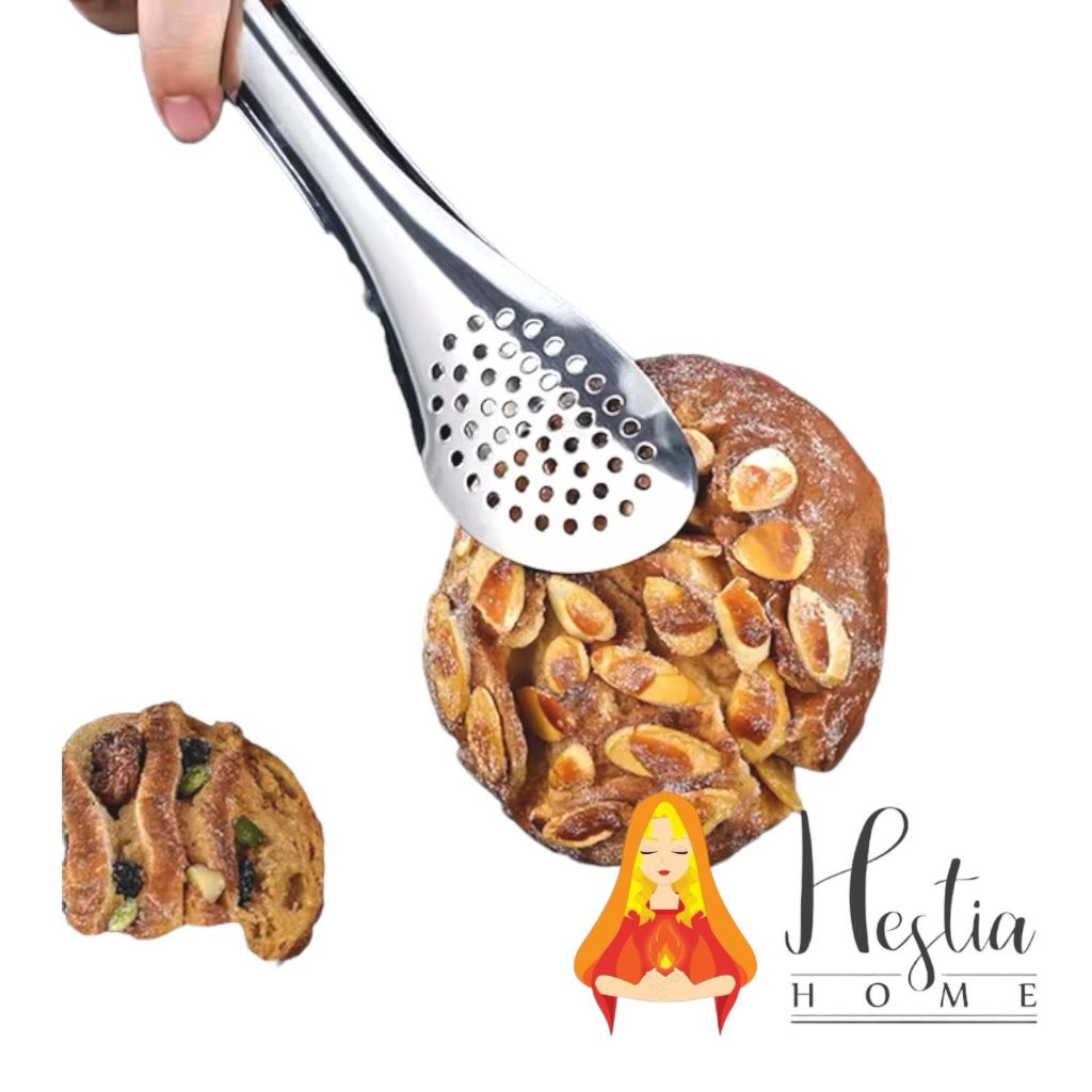 Penjepit Makanan Capitan Stainless Steel Tebal Bulat Lubang Food Tong