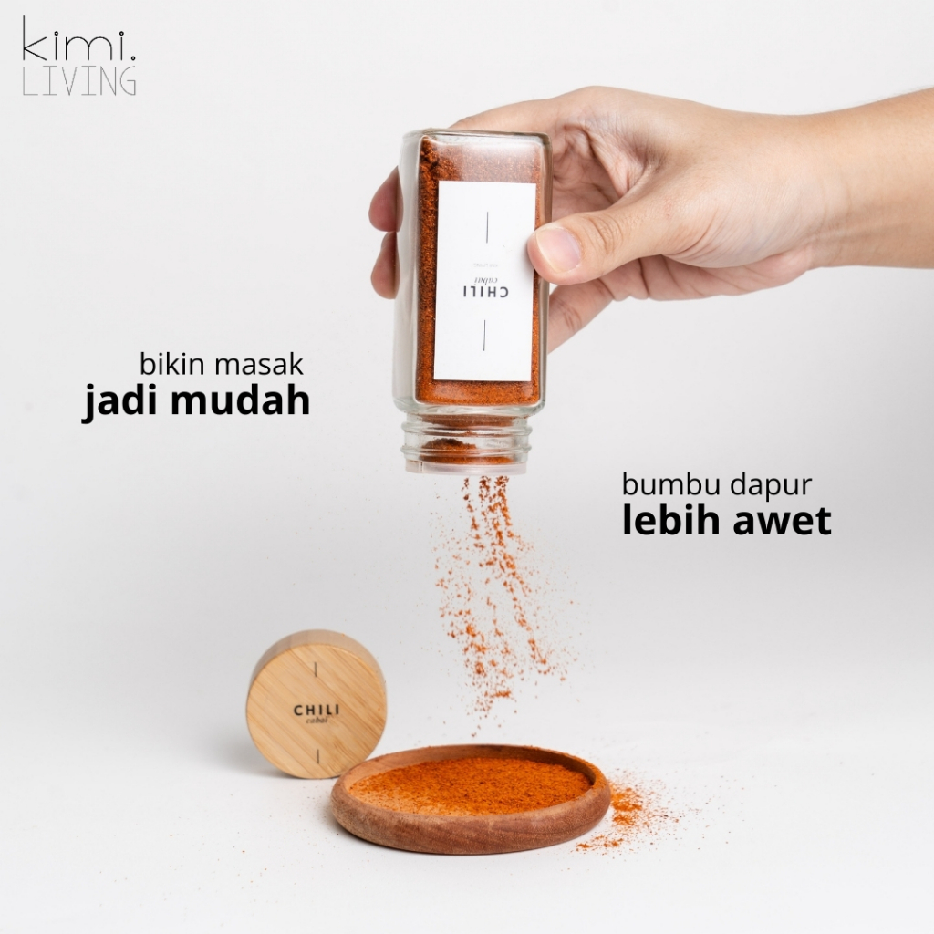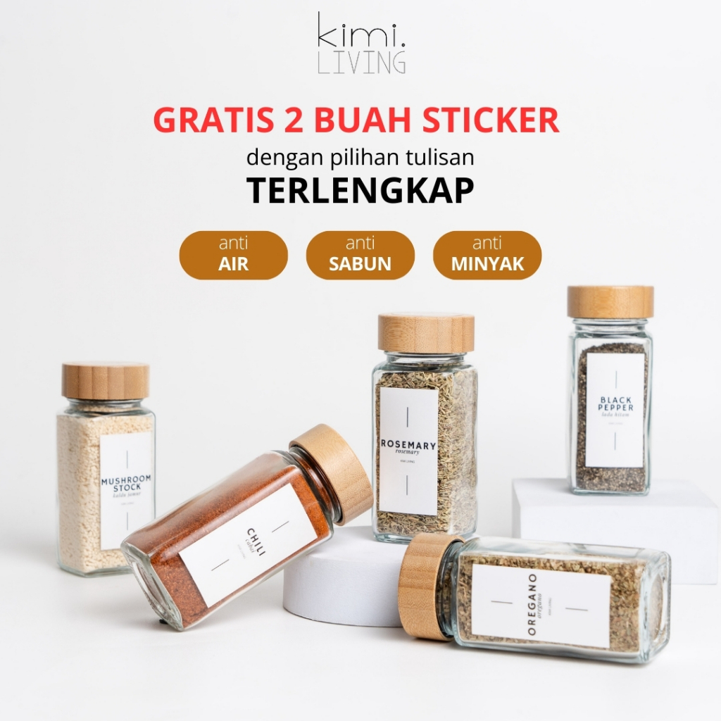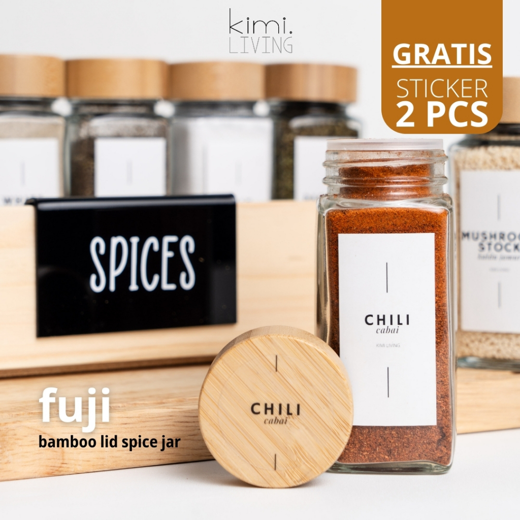 Tempat Bumbu Kimi Living Fuji Kaca Tutup Bambu Stiker Estetik 125Ml