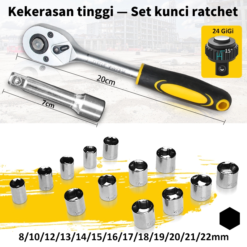 108 Pcs Set Kunci Sok Kunci Shock Toolbox Set Home Tool Mobil Motor Lengkap Socket Tool Kit set Pas Ring Motor Mobil