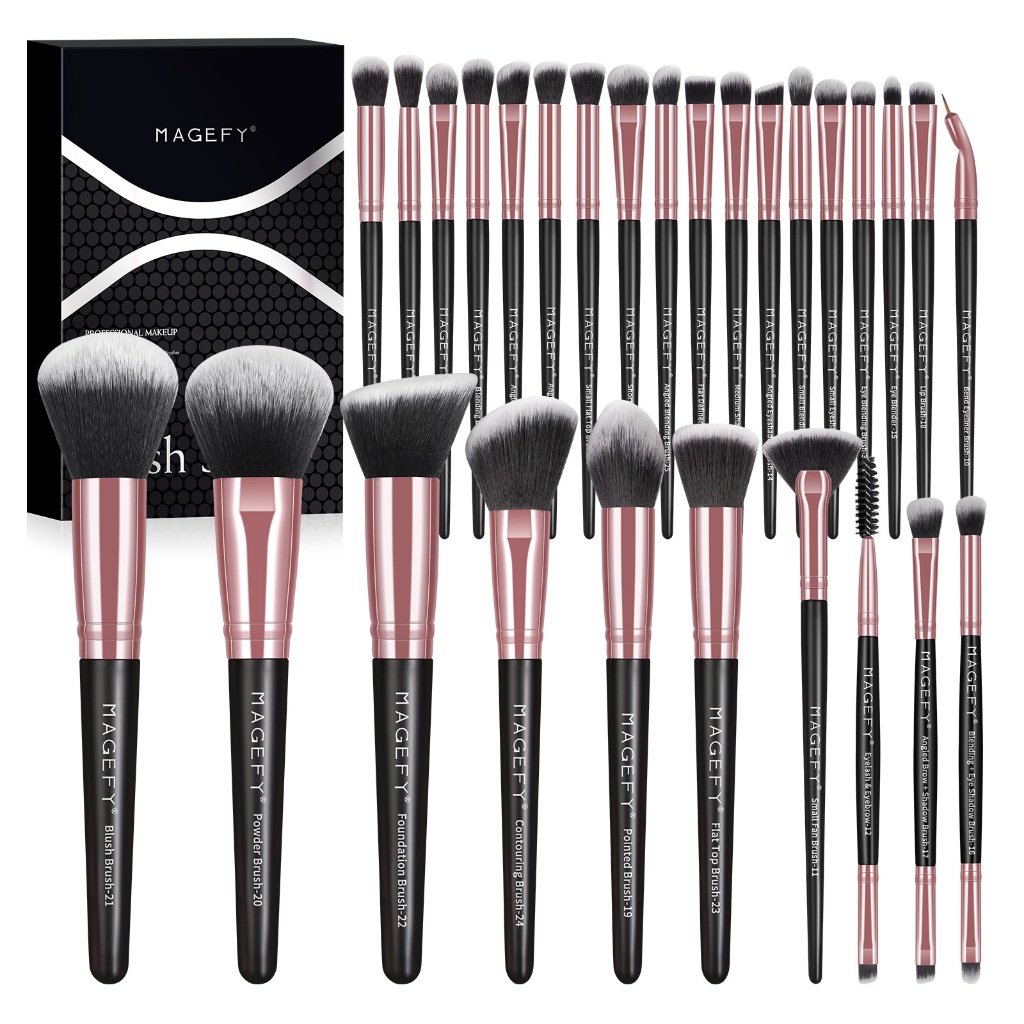 MAGEFY 28Pcs Set Brush Makeup Lembut Profesional Kuas Makeup Set Dengan Kotak Hadiah Kertas