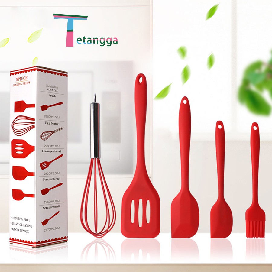 Set Spatula Silikon Non Stick 5 Pcs Kitchenware Peralatan Masak Cooking Tools