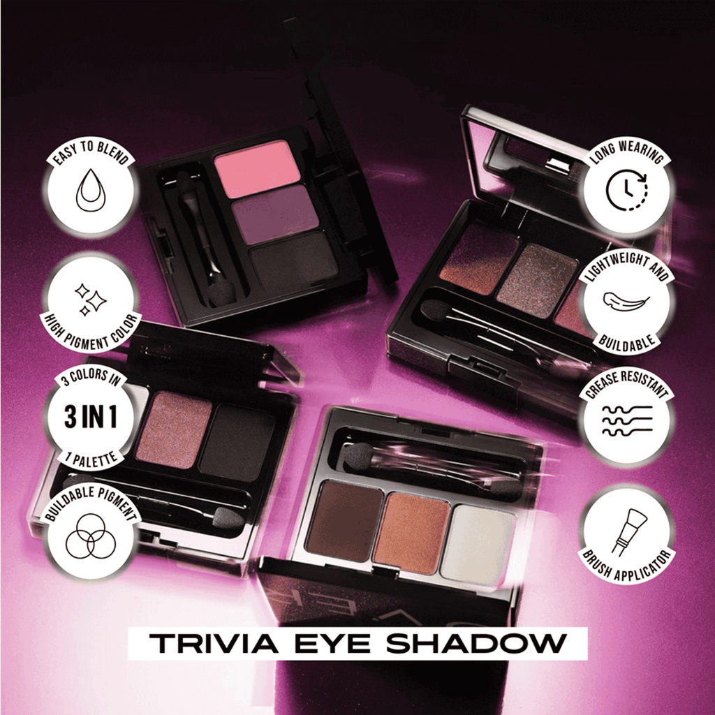 MAKE OVER - TRIVIA EYE SHADOW ( 6 g ) - Eyeshadow Palette 3 Warna Intense Travel-Friendly Easy Blend