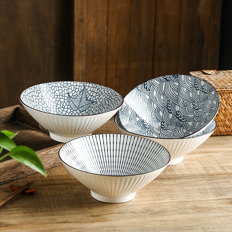 Mangkok Ramen Ashome Keramik Jepang Blue Collection Tahan Panas Microwave Estetis