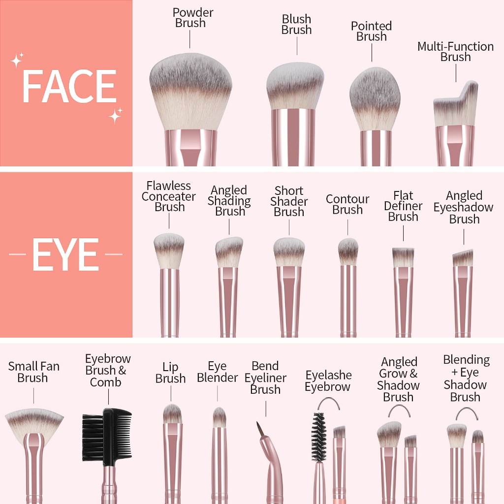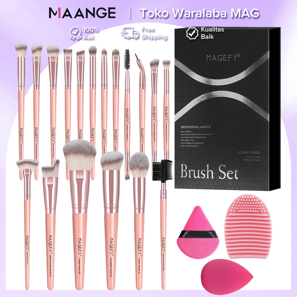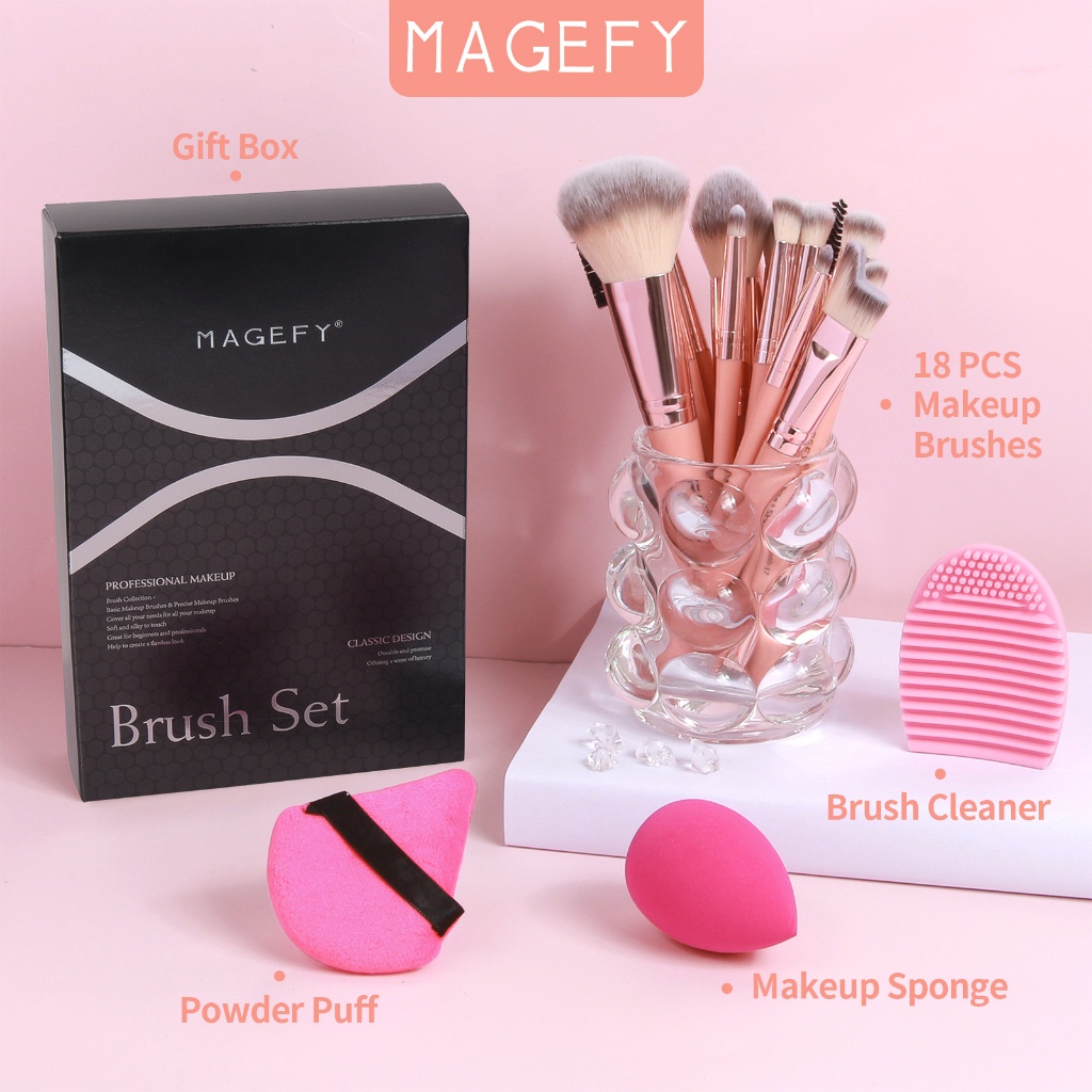 MAGEFY 18 Kuas Makeup + Karton + Spons Brush Make Up Set Kuas Riasan Makeup Beauty Tools Kuas Riasan Profesional 7623