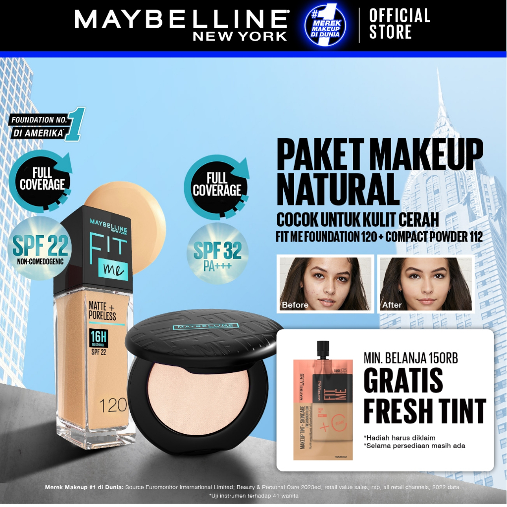 Maybelline Paket Makeup FIT ME Compact Powder + FIT ME Liquid Foundation FREE GIFT | Oil Control Tahan Lama
