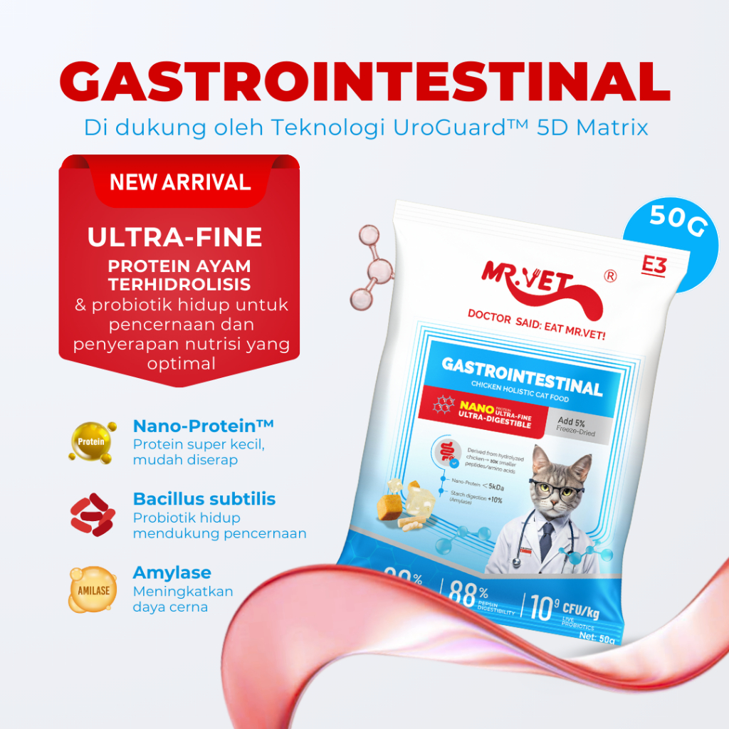 Makanan Kucing Kering E1/e2/e3 50g New Formula Mr. Vet