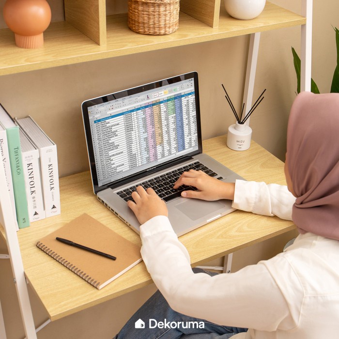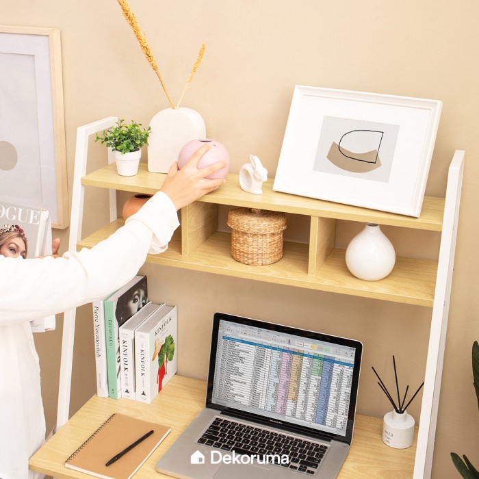Meja Belajar Dekoruma Toshi Dengan Rak Kayu Minimalis Meja Kerja Serbaguna