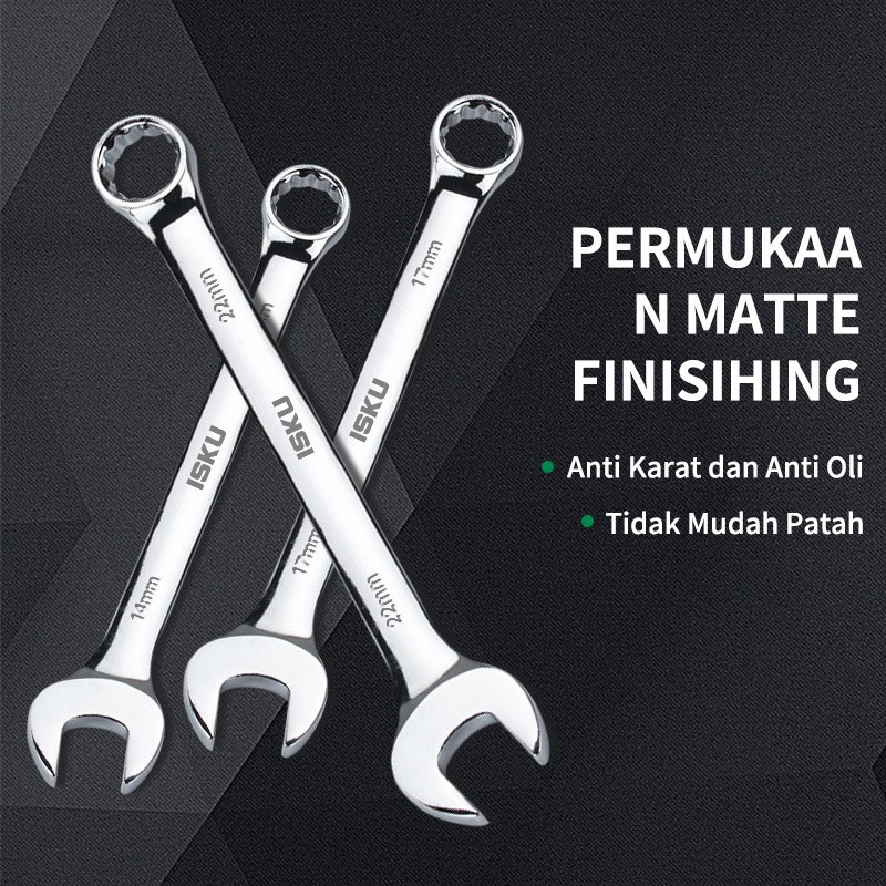 ISKU Kunci Ring Pas Set 11pcs 8-24mm Bahan Crv Kombinasi Wrench set 8-24mm 11 Pcs Kunci Pas