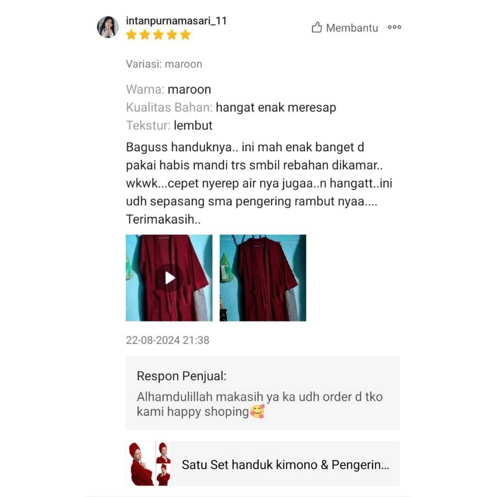 Handuk Kimono Set Dengan Pengering Rambut Kualitas Grade A Menyerap Air Cepat