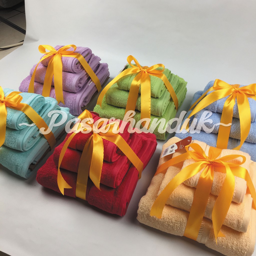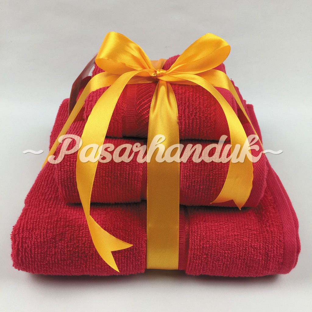 Handuk Mandi Dewasa Ph Paket 3Pcs Warna Merah Putih Ukuran 30X70 50X100 70X135