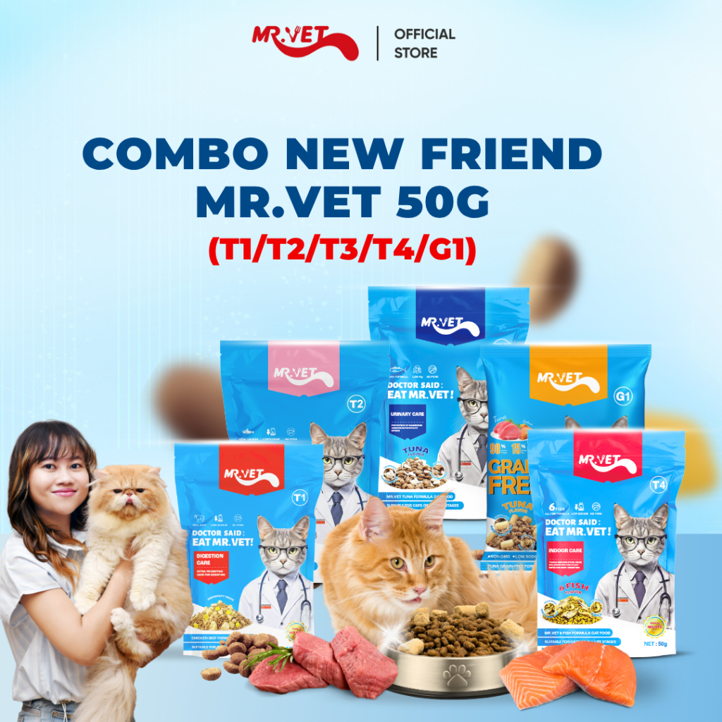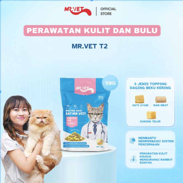 Makanan Kucing Kering 50g T1 Digestion/t2 Hair & Skin/t3 Urinary/t4 Cat Indoor Care/g1 Grain Free Mr. Vet