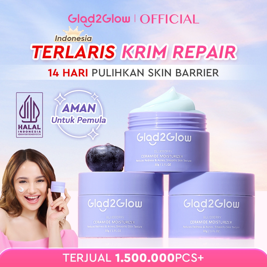 Moisturizer Repair Barrier Blueberry 5 PERSEN Ceramide Glad2glow Krim Wajah Sensitive Skin