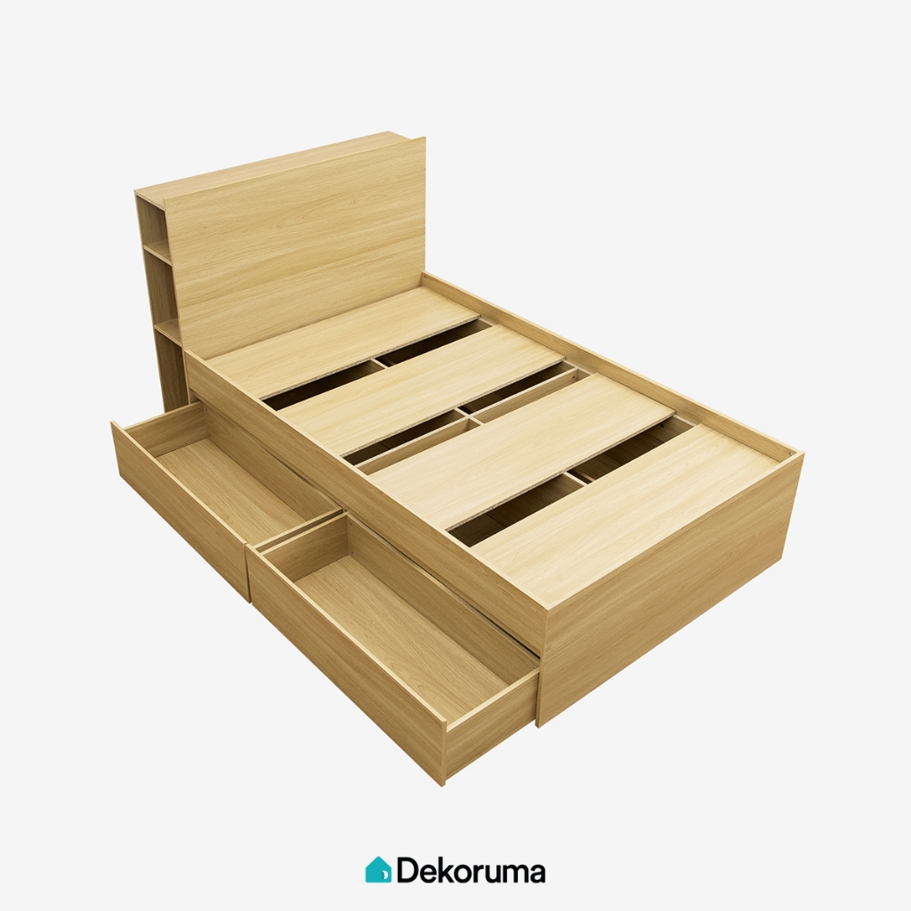 Dipan Tempat Tidur Dekoruma Moku Dengan Sandaran Kayu Olahan Laci Minimalis