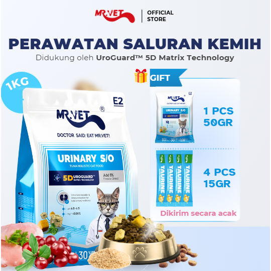 Makanan Kucing Kering Urinary Care E2 1kg Uroguard™ 5d Gift 50g 4x15g Cat Treats Mr. Vet