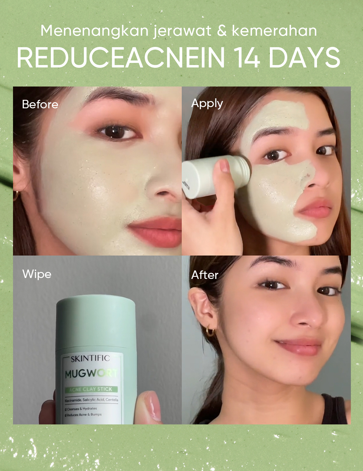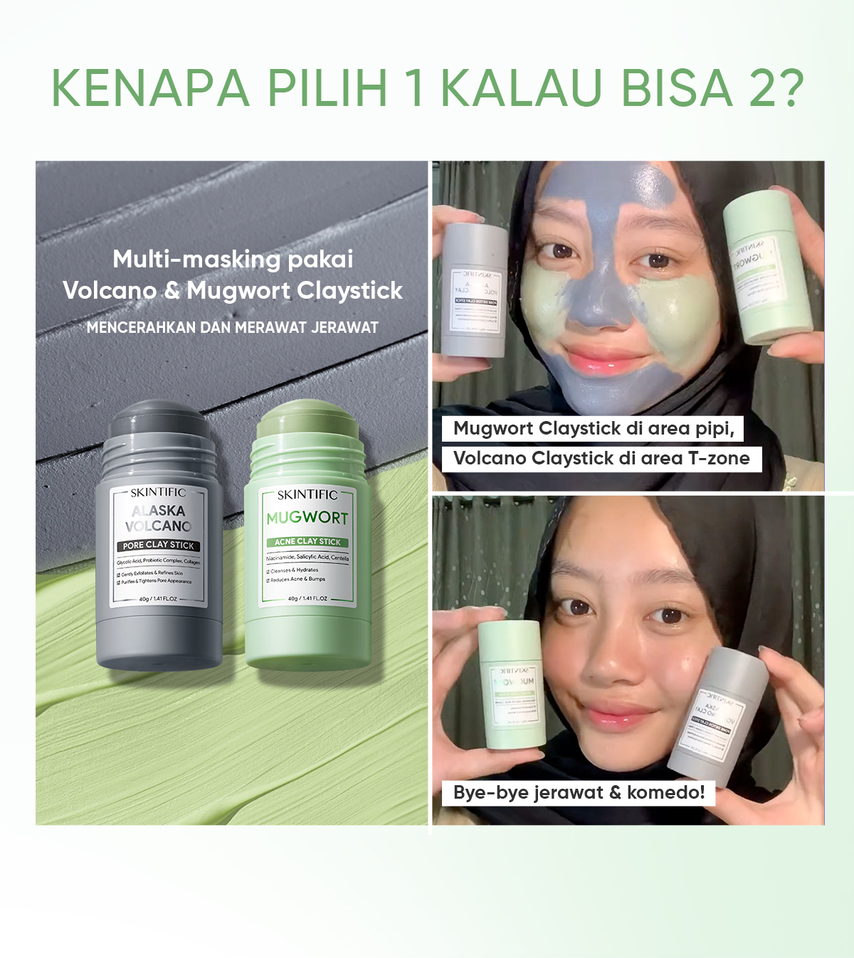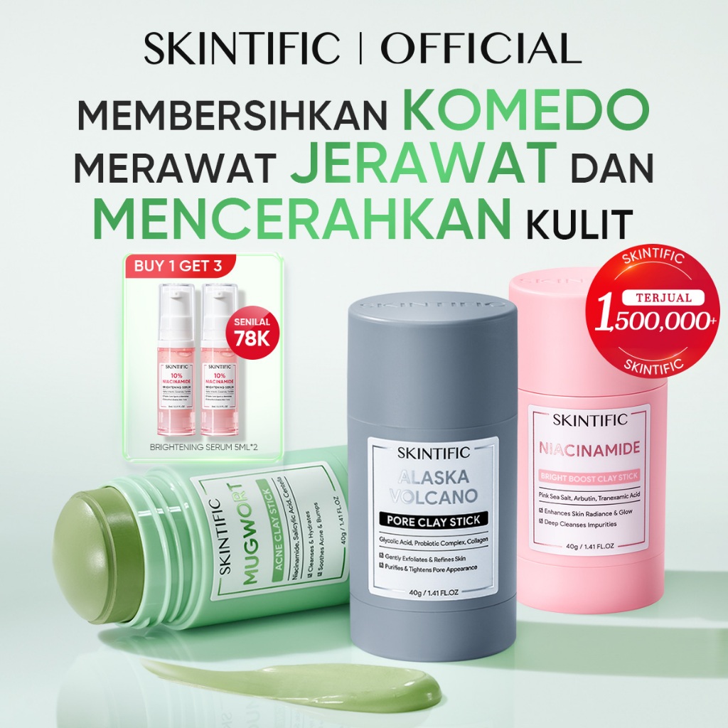 SKINTIFIC OFFICIAL STORE MUGWORT ACNE CLAY STICK + ALASKA CLAY STICK+NIACINAMIDE STICK MASKER MUKA MOISTURIZER SUNSCREEN
