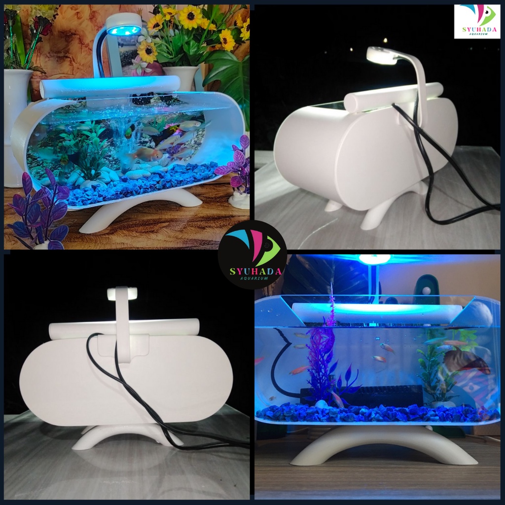 Aquarium Akrilik Cupang Mini Fullset Mesin Aerator Air Mancur Lampu Led Bb002