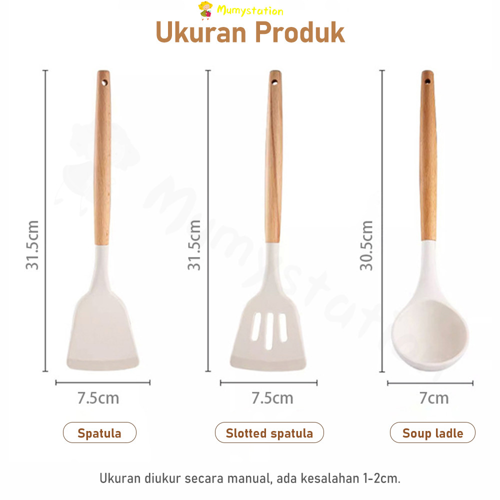 Spatula Silikon Mumystation 3 Pcs Peralatan Masak Pegangan Kayu Anti Gores