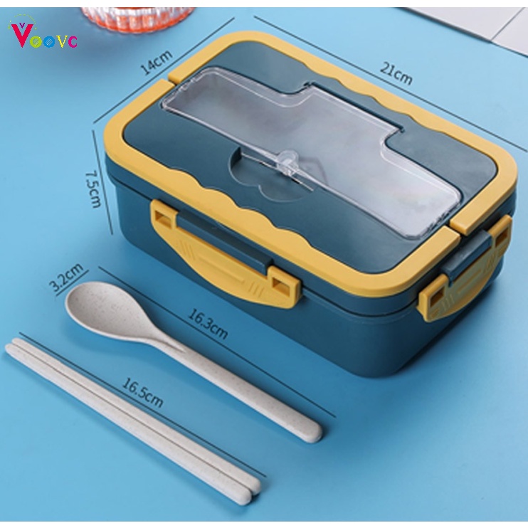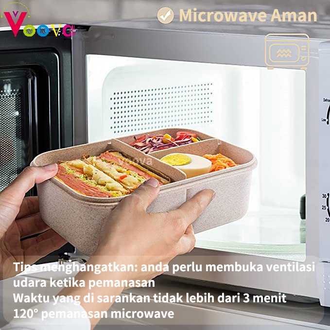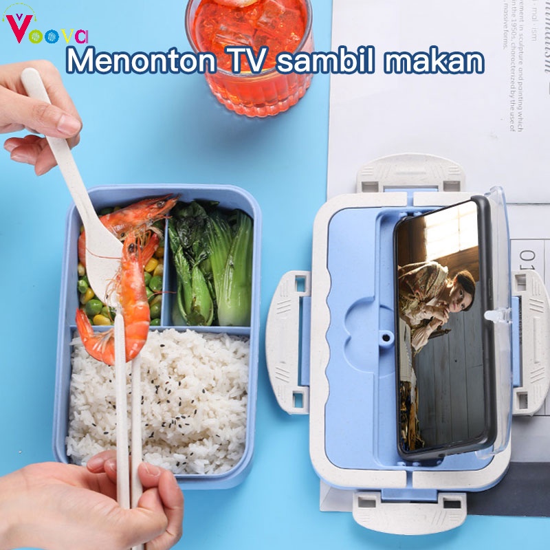 Lunch Box Voova Kotak Bekal Jerami Pegangan Melengkung Plus Sendok Dan Sumpit Bpa Free