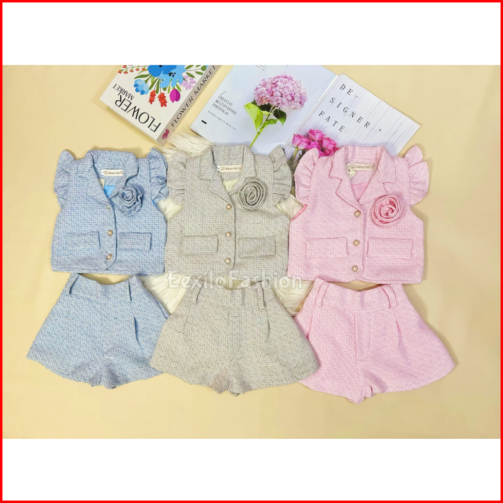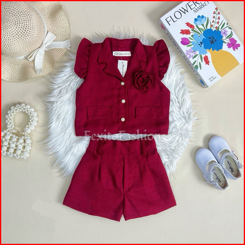Eexitofashion Rosie Set Setelan Anak Balita Perempuan Bunga Mawar Fashion Outfit Anak Cewek Tweed Set