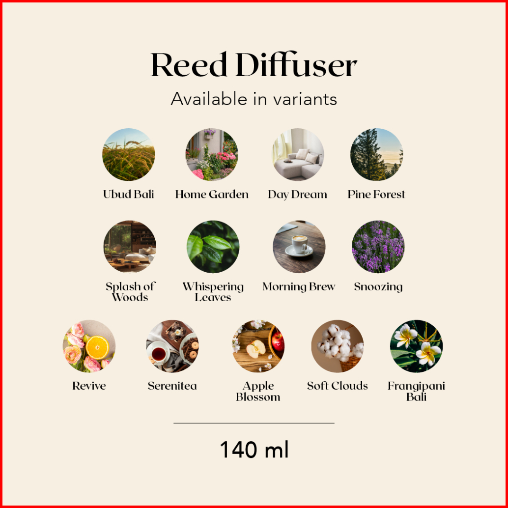 Ubud Bali, Home Garden, Day Dream, Pine Forest, Splash of Woods, Whispering Leaves, Morning Brew, Snoozing, Revive, Serenitea, Apple Blossom, Soft Clouds, Frangipani