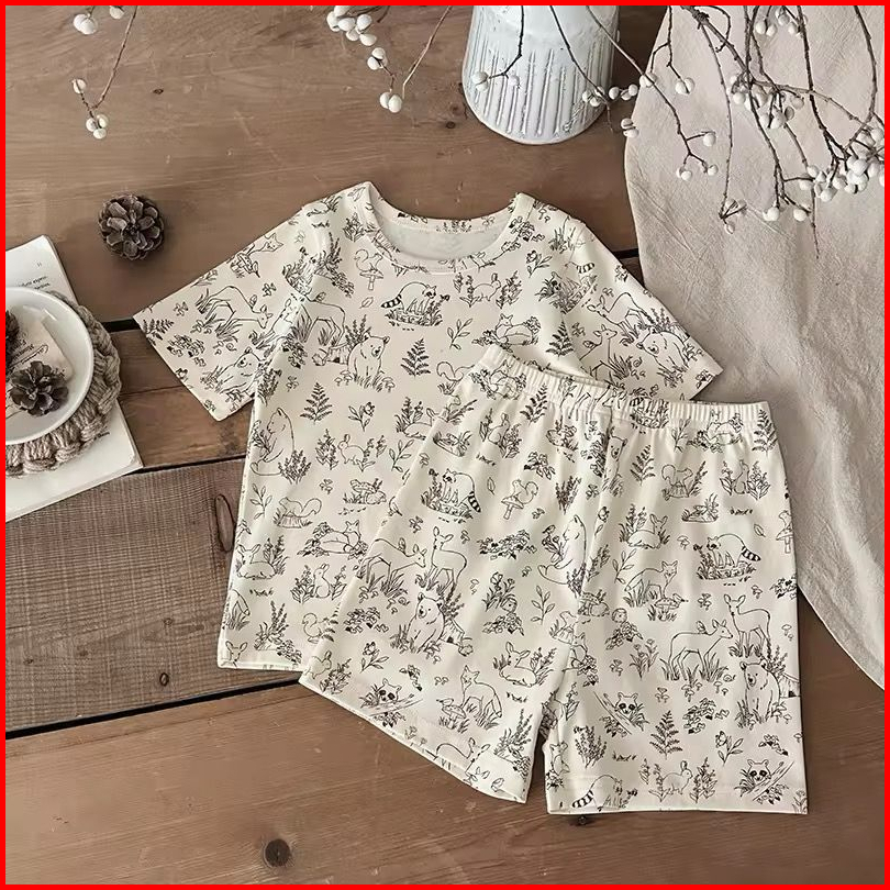 Littlevin - Setelan Anak Perempuan Full Motif Cream Series Karakter 0-5 Tahun