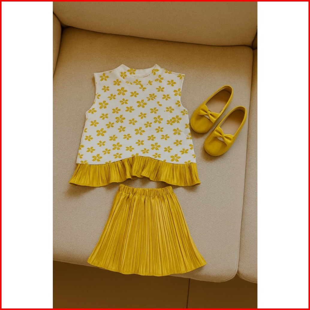 Setelan Anak Perempuan Rok Plisket Dengan Lekbong Motif Bunga Usia 6 Bulan Sampai 10 Tahun