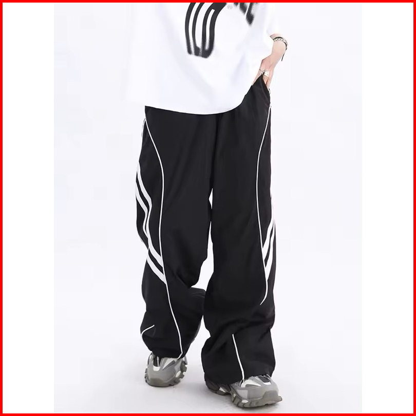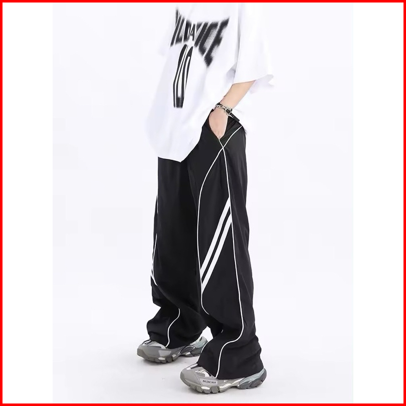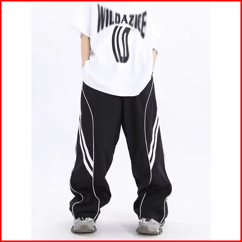 Overflowstuff Retro Patchwork Wide-leg Pants Trendy Water-repellent Track Pants Sportsweat