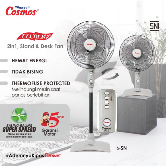 Kipas Angin 2in1 Stand & Desk, 16 Inch Cosmos 16sn Kipas Angin Desk & Stand