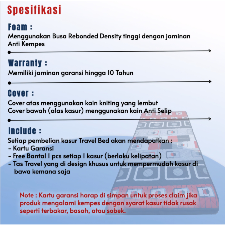 Kasur Lantai Gulung Erland Travel Bed Garansi 10 Tahun Matras Nyaman