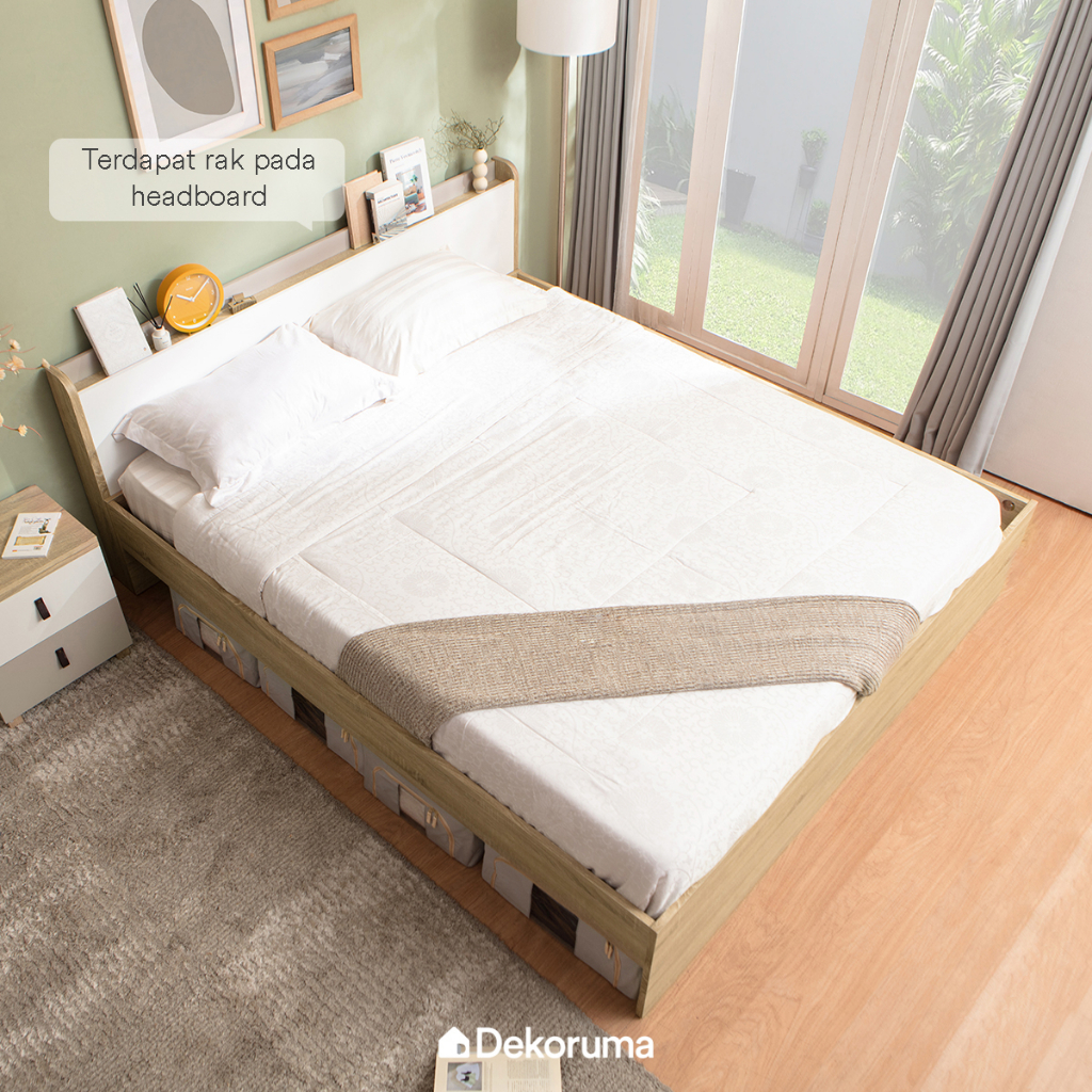 Dipan Tempat Tidur Dekoruma Runa Kayu Queen Size Ranjang Kasur Minimalis